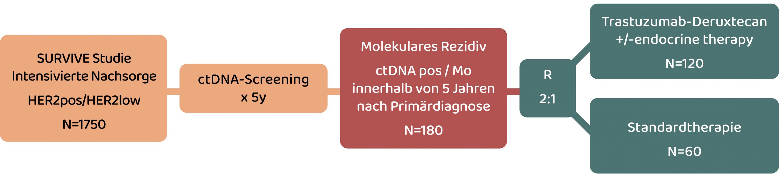 Während des Behandlungszeitraums werden regelmäßige ctDNA-Untersuchungen durchgeführt (alle 3 Monate). Aufgrund der durch die positive ctDNA bestimmten Hochrisikokonstellation bei der Entwicklung radiologisch sichtbarer Fernmetastasen werden während des interventionellen Teils der Studie alle 3 Monate Staging-Untersuchungen (CT-Scan von Brust und Bauch) durchgeführt, d. h. im 3./6./9./12./15./18./24. Monat.